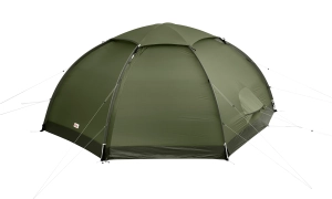 Przestronny i stabilny namiot kopułowy z dwoma dużymi przedsionkami. Lekki i wygodny namiot trekkingowy do korzystania przez cały rok, w każdych warunkach poza najbardziej ekstremalnymi. Dwa wejścia ułatwiają korzystanie z namiotu i utrzymanie porządku, a przy wietrznej pogodzie pozwalają używać wejścia po stronie zawietrznej. Namiot zapewnia dużo miejsca na ekwipunek, gotowanie i spędzanie czasu w razie niepogody. Tropik i sypialnia rozstawiane są razem. Trójelementowy, samonośny stelaż ułatwia ustawienie w terenie – wystarczy dobić odciągi, aby zwiększyć odporność na wiatr. Tunele na maszty są oznaczone kolorami i przystosowane do podwójnych masztów (akcesoria). Wysokość wewnątrz umożliwia wygodne siedzenie. Odpinana półka z siatki oraz liczne kieszenie porządkują drobiazgi. Duże otwory z drobną moskitierą pozwalają podziwiać widoki bez owadów; regulowane wloty wentylacyjne rozmieszczono na różnych wysokościach. Drzwi wewnętrzne można zablokować w pozycji półotwartej. Tropik z nylonu TripleRip (20D góra / 40D dół) łączy niską wagę z wysoką trwałością. Jak wszystkie namioty Fjällräven, model wolny od PVC i toksycznych retardantów, z impregnacją bez PFC.