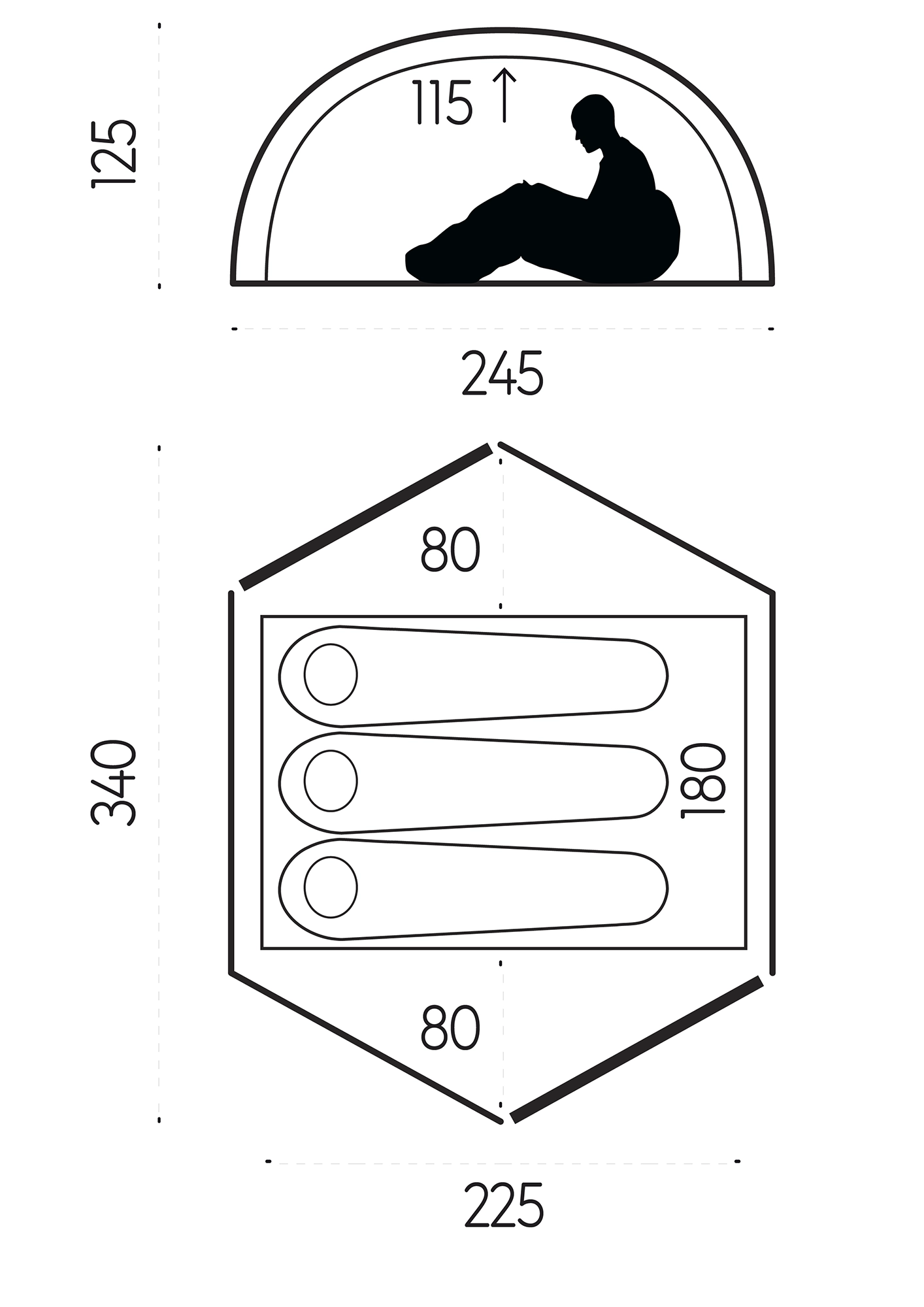 - wytrzymały, wolnostojący namiot kopułowy dla trzech osób.