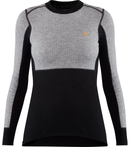 Techniczna bluza bazowa z wełny merino. Maksymalny komfort i funkcjonalność zapewnia połączenie trzech technik dziewiarskich, dzięki czemu sprawdza się przy zróżnicowanej aktywności. Lekka, elastyczna i dopasowująca się do ruchów, przeznaczona do całorocznych aktywności na świeżym powietrzu. Pętelkowa struktura na ramionach, klatce piersiowej i zewnętrznych częściach rękawów zapewnia ciepło, a wełniana siateczka na rękawach, bokach i w dolnej części korpusu oferuje świetną wentylację. Prążkowane mankiety, dekolt i boczne wstawki poprawiają dopasowanie, a płaskie szwy minimalizują ryzyko otarć. Wełna merino grzeje nawet w wilgoci; domieszka włókien syntetycznych zwiększa trwałość. Wełna z hodowli bez mulesingu.