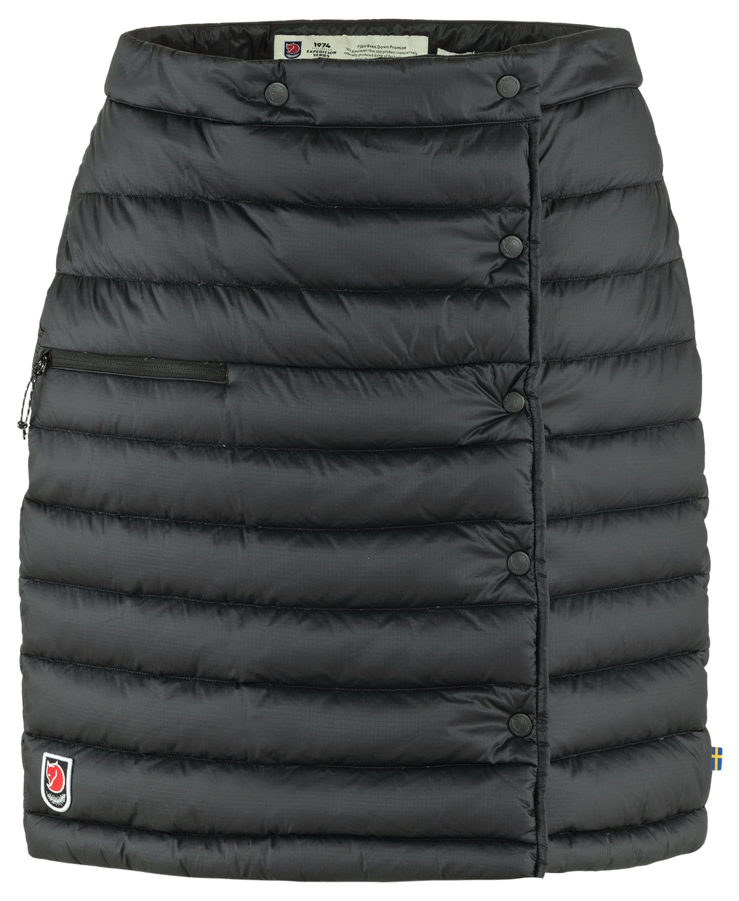 Fjallraven Expedition Pack Down Skirt - lekka puchowa spódnica, która znajduje świetne zastosowanie w turystyce: w czasie zimowych aktywności w terenie i użytkowaniu w mroźne dni w miejskich warunkach. Puchowa spódnica jest łatwa do założenia w czasie przerwy od jazdy na łyżwach czy nartach lub w trakcie dojazdów do pracy. Uszyta tak, by zapewnić swobodę ruchów podczas jazdy na nartach czy w codziennym chodzeniu. Spódnica zapewnia łatwe zakładanie dodatkowych warstw w zależności od temperatury. Spódnica wyposażona jest w zapinaną na zamek kieszeń, która pełni jednocześnie funkcję pokrowca na spódnicę oraz wewnętrzną kieszonkę z siateczki mesh do przechowania niezbędnych drobiazgów. Dostępna w dwóch wariantach kolorystycznych: 525 - UN Blue i 550 - Black.