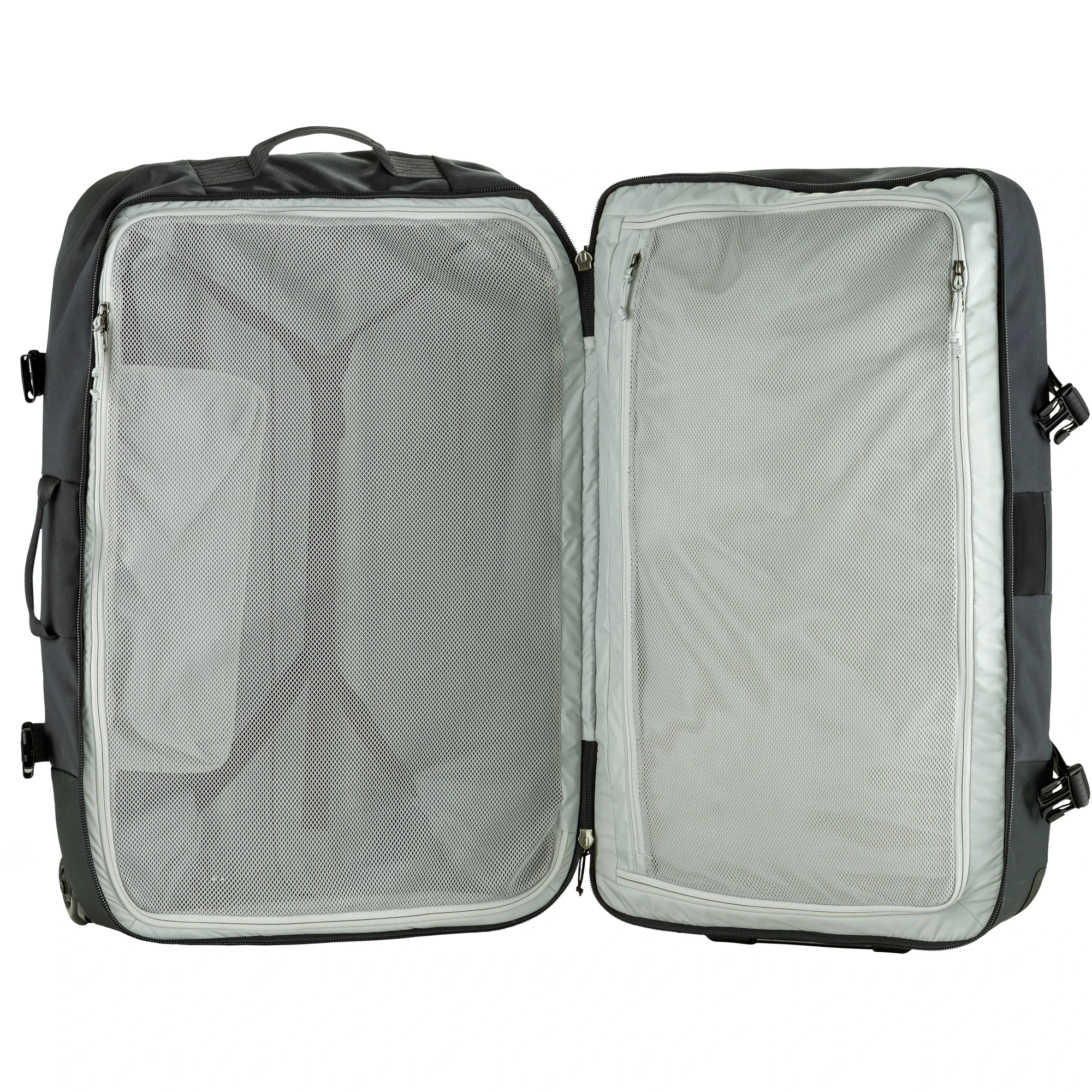 - zewnętrzne paski kompresyjne zwiększające stabilność i zmniejszające objętość bagażu,