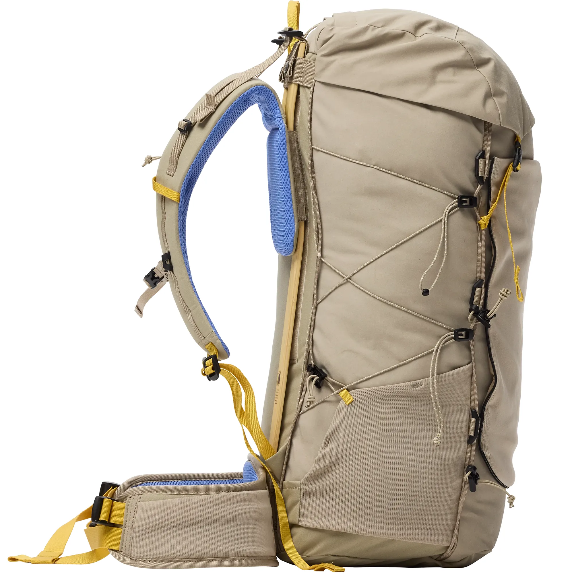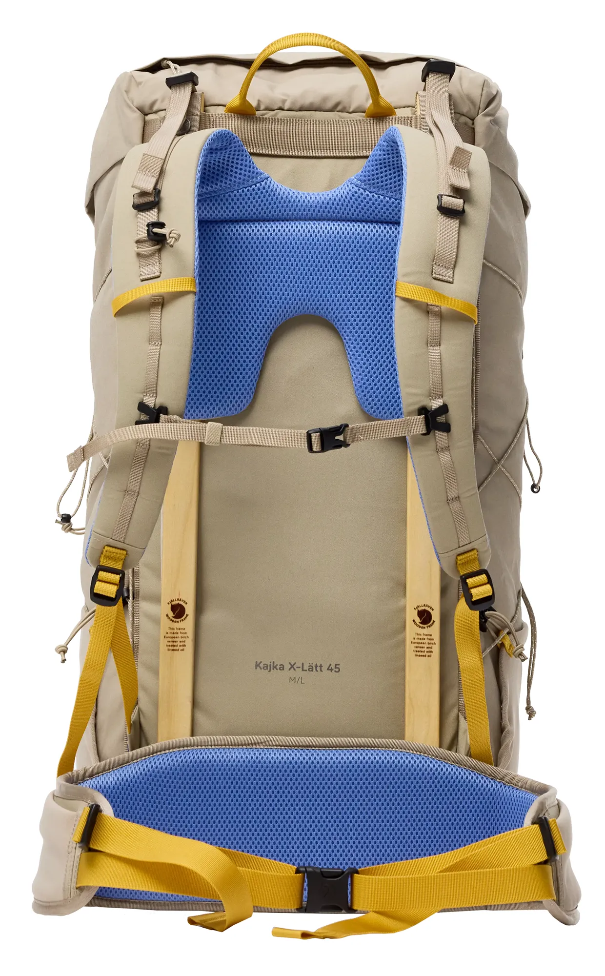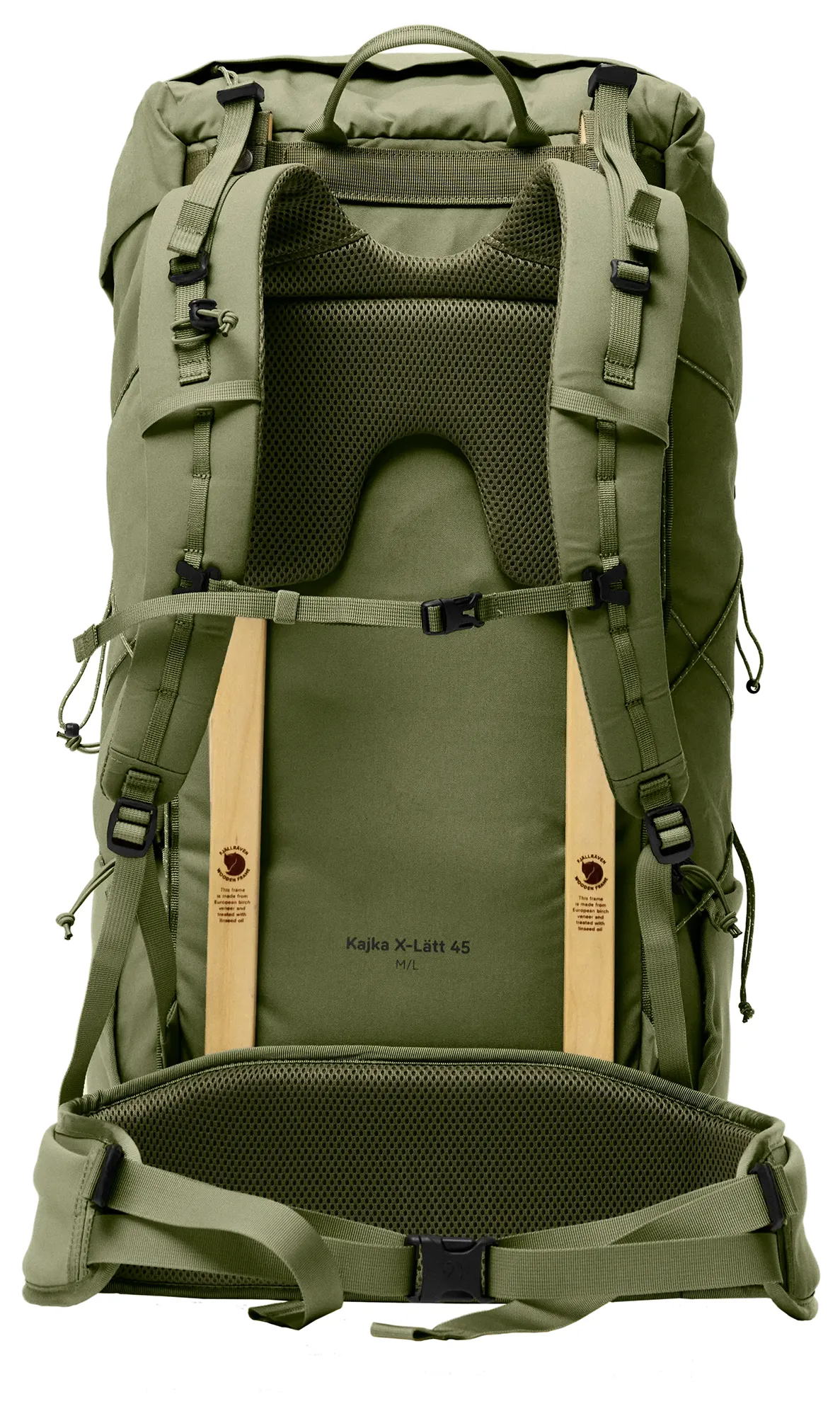Litera X w nazwie Fjällräven nawiązuje do koncepcji exploration i odzwierciedla filozofię marki opartą na świadomym projektowaniu – analizie funkcjonalności, trwałości oraz rzeczywistego zastosowania sprzętu w warunkach terenowych. W modelu Kajka X-Lätt 45 priorytetem stało się połączenie solidnej konstrukcji, przemyślanych rozwiązań użytkowych oraz możliwie niskiej masy. To lekki, a jednocześnie wyjątkowo trwały plecak trekkingowy, zaprojektowany z myślą o długotrwałym użytkowaniu i łatwej konserwacji. Komora główna o pojemności 45 litrów wykonana jest z odpornego materiału Vinylon F i wsparta wysokiej klasy stelażem z drewna brzozowego. System nośny umożliwia precyzyjną regulację długości pleców, a elastyczne kieszenie boczne oraz odpinana kieszeń przednia zwiększają możliwości organizacji ekwipunku. Wewnątrz umieszczono wyjmowaną kieszeń, którą w razie potrzeby można nosić osobno jako kompaktową torbę na ramię na najważniejsze drobiazgi. Wersja w rozmiarze M/L została wyposażona w dłuższe szelki oraz szerszy i wydłużony pas biodrowy, zapewniając lepsze dopasowanie do bardziej masywnych sylwetek.