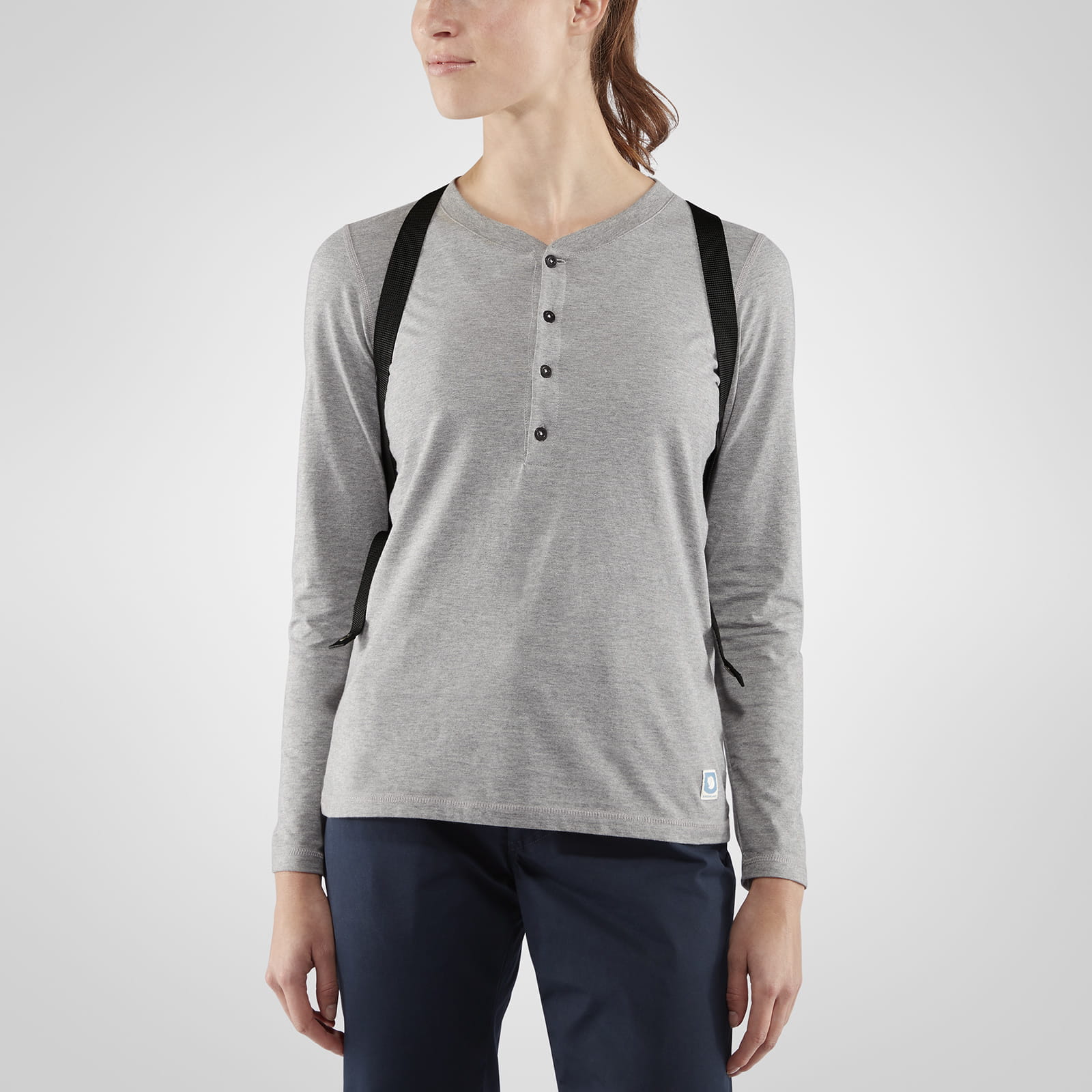 System nośny jest prosty, ale praktyczny. Składa się z uchwytów u góry i wąskich, regulowanych pasków na ramię. Logo z przodu jest odblaskowe. W głównej przegrodzie umieszczona jest etykieta na nazwisko.