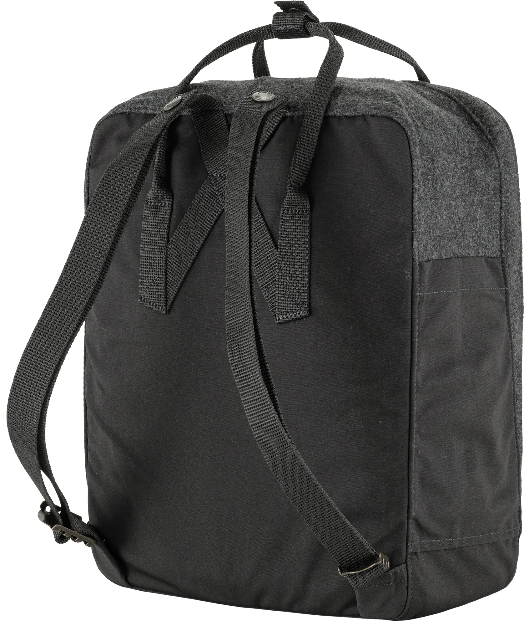 Kanken Re-Wool to specjalna wersja klasycznego plecaka Kanken wykonana z wełny z recyklingu. Ścinki materiałów pochodzące z przemysłu tekstylnego, przekształcono z wykorzystaniem tradycyjnych metod w wysokiej jakości, miękki materiał Melton. Tylny panel, spód, kieszenie i podszewkę wykonano z materiału G-1000 HeavyDuty Eco S, podobnie jak siedzisko chowane w komorze głównej. Plecak w klasycznej wersji z parcianymi paskami szelek i uchwytami u góry.
