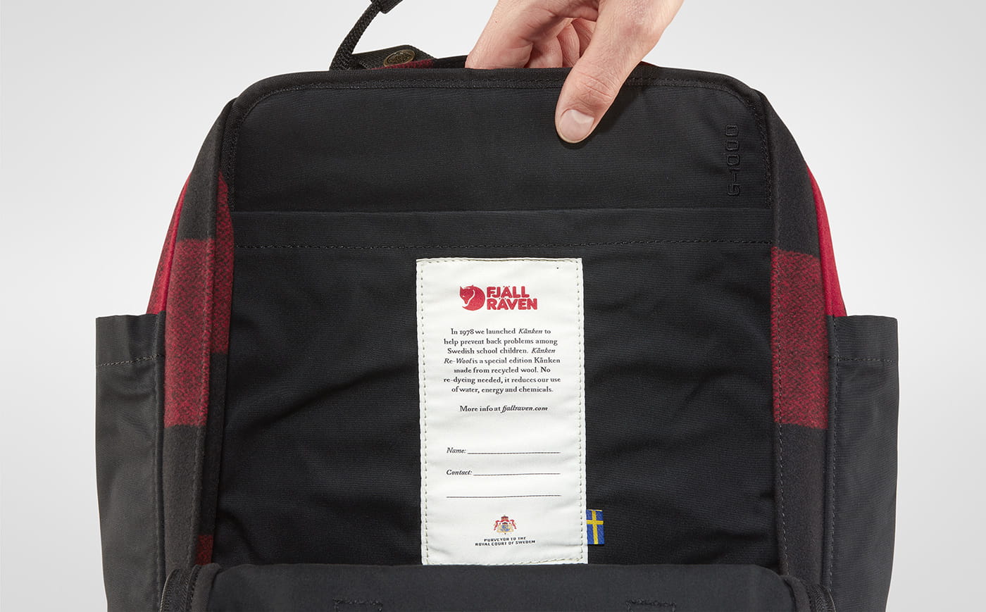Kånken Re-Wool to specjalna wersja klasycznego plecaka Kånken wykonana z wełny z recyklingu. Ścinki materiałów pochodzące z przemysłu tekstylnego, przekształcono z wykorzystaniem tradycyjnych metod w wysokiej jakości, miękki materiał Melton. Tylny panel, spód, kieszenie i podszewkę wykonano z materiału G-1000 HeavyDuty Eco S, podobnie jak siedzisko chowane w komorze głównej. Plecak w klasycznej wersji z parcianymi paskami szelek i uchwytami u góry.