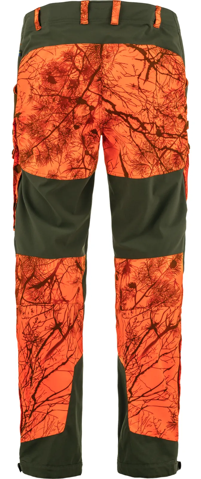 Lekkie, wytrzymałe spodnie o zoptymalizowanym kroju przeznaczone na aktywne polowania. Krój tych spodni nawiązuje do wyróżnionego wieloma nagrodami modelu Keb Trousers. Spodnie zostały wykonane z zapewniającego doskonałą swobodę ruchów streczu oraz cichej, odpornej na warunki atmosferyczne tkaniny G-1000 Silent Eco umieszczonej na pośladkach, z przodu ud, na kolanach oraz po wewnętrznej stronie nogawek u dołu. Doskonały wybór na intensywne polowania, takie jak śledzenie ptaków, które wymaga wzmożonej aktywności w zróżnicowanym terenie lub na polowania z psami.Otwory wentylacyjne opatrzone zamkami błyskawicznymi od kolan do bioder pozwalają uwolnić zbędne ciepło. Spodnie zostały opatrzone dodatkowymi zamkami błyskawicznymi po zewnętrznej stronie łydek. Dwie przestronne kieszenie na nogawkach, obie z klapkami i zatrzaskami – lewa zapinana dodatkowo na zamek błyskawiczny, a prawa z wewnętrzną siateczkową kieszonką na telefon komórkowy lub krótkofalówkę. Dodatkowo dwie kieszenie boczne i kieszeń na nóż. Szwy po wewnętrznej stronie ud zostały umieszczone tak, aby zminimalizować ryzyko obtarć, a podwójna warstwa materiału w łydkach jest w stanie wytrzymać ocieranie o buty. Regulowane paski zapinane na guziki przy mankietach nogawek przytrzymują spodnie we właściwym miejscu. Spodnie posiadają ponadto haczyk, który można przypiąć do sznurówek. Wzmocnione sekcje paska zapewniają wygodę przy ewentualnym wykorzystaniu szelek.